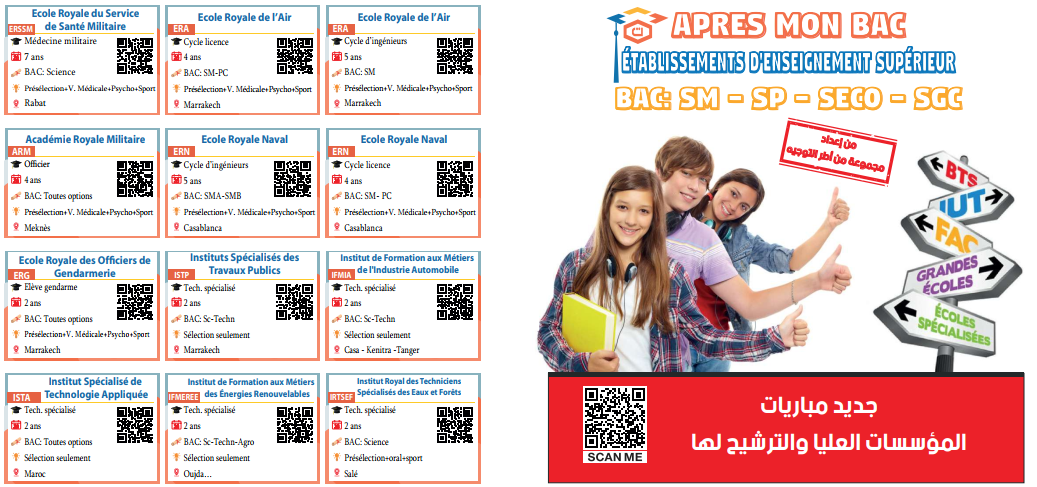 مؤسسات ومعاهد بعد البكالوريا : SM-SP-SECO-SGC